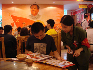 Day 06- August 08 | When we got to the studio in the morning, it was a different atmosphere. There was a fan, the A/C was on, and we were told that the lights in our living room would be repaired. I could not believe that I had to send an email to CAC in Manchester for things to change in Chongqing. In the evening, YanYan and Mao Yan Yang (who had done a residency with Chinese Arts Centre earlier this year) took us to a Mao/Revolution-themed restaurant. After dinner, there was a song and dance performance, and I was able to interview one of the managers for my research on Chinese restaurants.