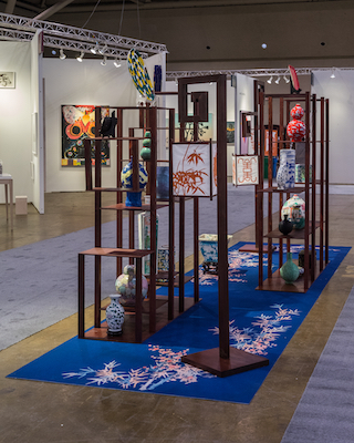 Creating an imagined space of a scholar's collection of porcelain-ware or a Chinese antique dealer's shop, this installation explores how Chinese spaces and material culture