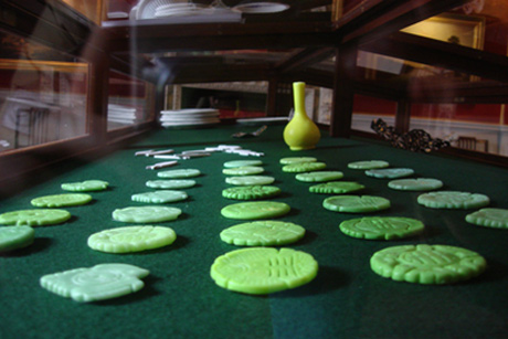 Chinese Bedroom Papier-mâché, peinture, encre, aluminium, plumes, plastique, découpages en papier, billes