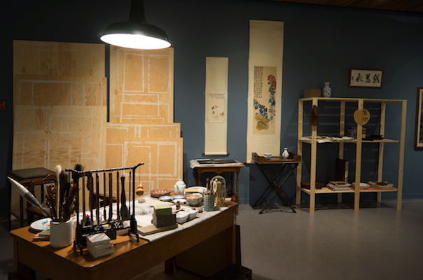 With wings like clouds hung from the sky est une installation-exposition qui a réimaginé le studio de Lee Nam, immigrant chinois en Colombie-Britannique et ami de la peintre moderniste et icône canadienne Emily Carr dans les années 1930. Au cours de deux résidences à l’Art Gallery of Greater Victoria (AGGV), j’ai effectué des recherches historiques sur l’amitié entre Emily Carr et Lee Nam, dont nous ne connaissons l’existence que par les journaux dans lesquels elle a parlé de leur amitié. Pour tenter de donner une présence à Lee Nam, l’installation du studio incorpore des éléments d’un studio de peintre chinois typique, une esquisse attribuée à la fois à Lee et à Carr, des peintures de Carr et d’autres œuvres d’art historiques de la collection de l’AGGV, ainsi que des œuvres réalisées en collaboration avec des artistes locaux pratiquant la peinture traditionnelle à l’encre de Chine pour refléter leurs expériences au Canada. L’installation comprenait également une série de dessins sous forme de portraits de Lee Nam basés sur les relevés de taxe d’entrée des immigrants arrivant au Canada avec des noms similaires, et intègre une deuxième installation, « Like rain drops rolling down new paint » (2017), qui se compose de plus de 300 peintures au pinceau d’oiseaux suspendues au plafond. Enfin, au sein de l’installation-exposition, une zone d’atelier permet d’engager les visiteurs à participer aux peintures d’oiseaux et de fleurs et à contribuer à l’œuvre.