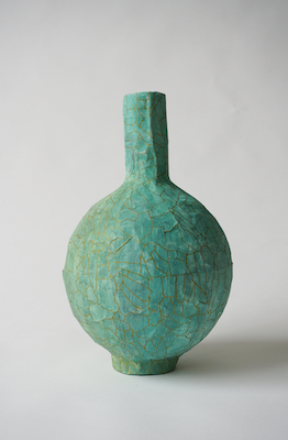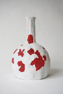 Papier-mâché, cardboard, watercolour, gouache, pigmented India ink, gesso, gold marker